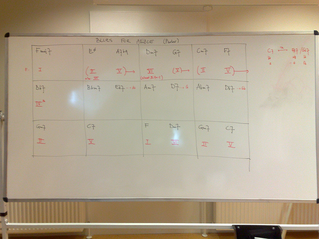 22052008369 Published November 4, 2012 at 1024 × 768 in Whiteboards May 2008 Blues for Alice, harmonic analysis read the full text... Blues for Alice, harmonic analysis
