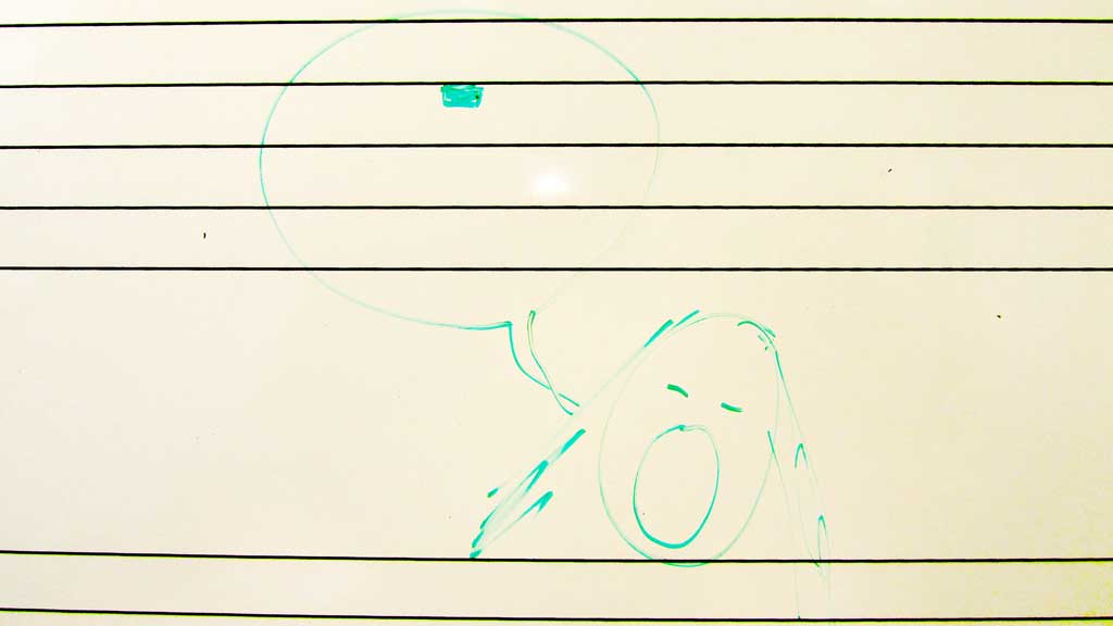 my impression of a yawning music student, a singer indeed, in the form of a spontaneous cartoon on the whiteboard