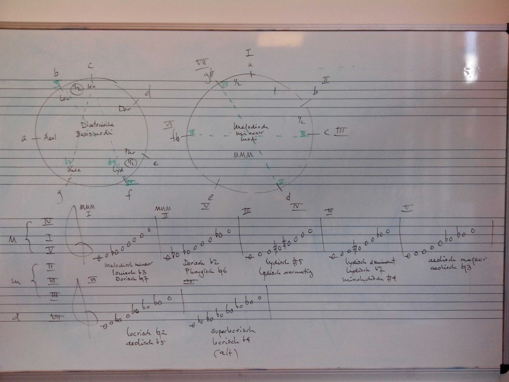 basic diatonic modes (aka church modes), melodic minor modes, harmonic minor modes